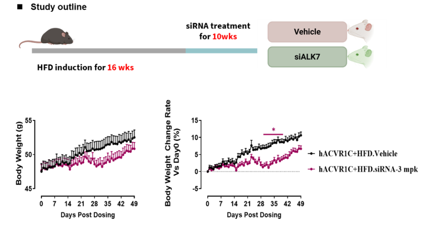 结果:靶向ACVR1C的siRNA可有效降低高脂饮食(HFD)诱导的小鼠体重增长