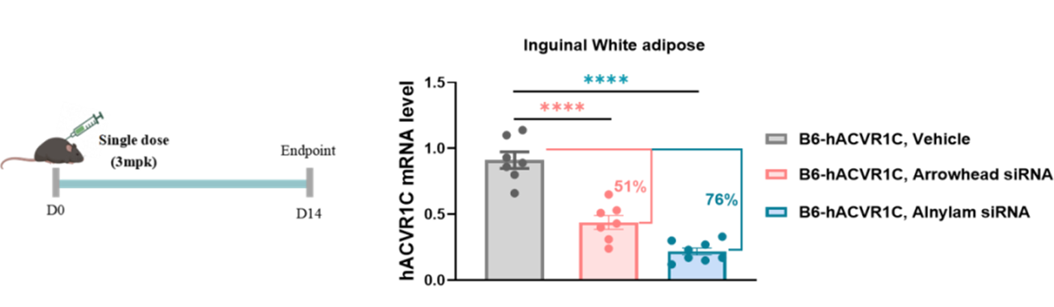 图3. ALK7-siRNA在B6-hACVR1C小鼠中的基因敲低效率研究