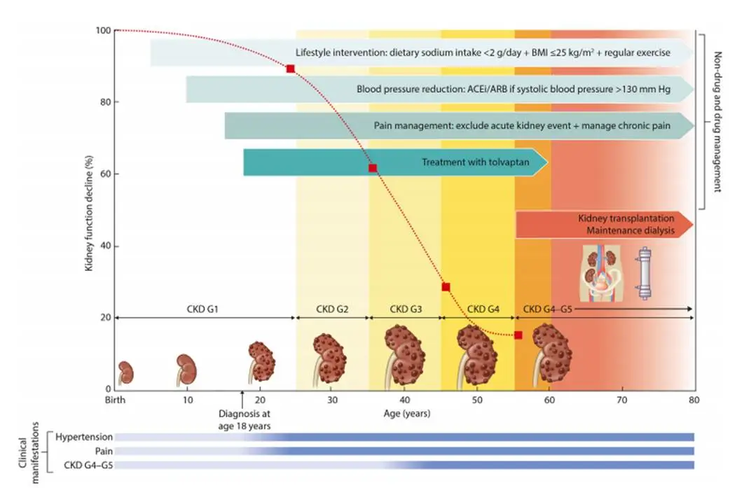 并发症与终末期处理:囊肿破裂/感染时行穿刺引流联合抗感染;终末期肾病采取肾移植或透析治疗。