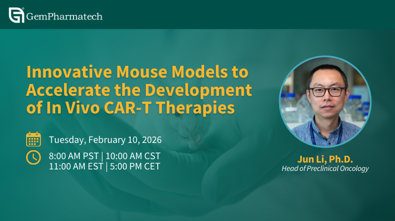 In this webinar, GemPharmatech’s Dr. Qi Xiao will introduce diverse preclinical models developed for different applications in acceleration of therapeutic discovery.
